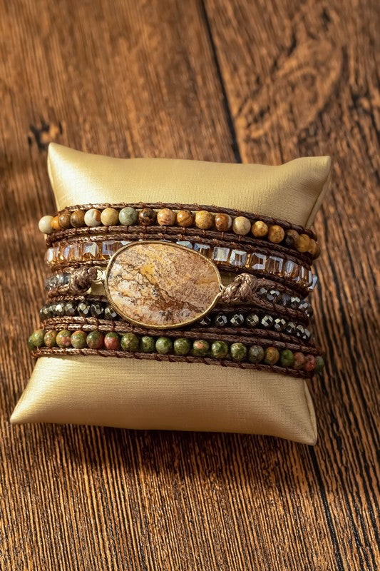 34 inch 5 wraps natural stone boho bracelet